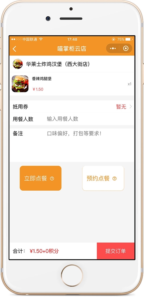 喵掌柜是一款外賣訂餐類小程序。