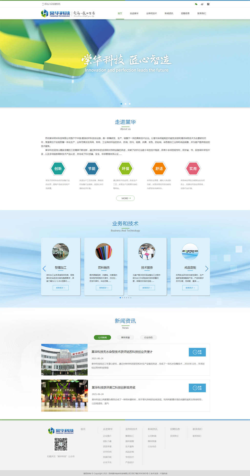 我公司落戶于中國(guó)·盛澤紡織科技創(chuàng)業(yè)園,是一家集研發(fā)、生產(chǎn)、銷售于一體的高新技術(shù)企業(yè)。以零污染低能耗的功能性涂層和清潔染色技術(shù)為主要研究方向,常溫常壓下實(shí)現(xiàn)色整一體化生產(chǎn),業(yè)務(wù)范圍涉及民用、軍用、工業(yè)用紡織品的防水、防油、防污、阻燃、抗菌、變色、防鉆絨、染色等加工業(yè)務(wù)和成品銷售,并為客戶提供相應(yīng)的技術(shù)服務(wù)。
