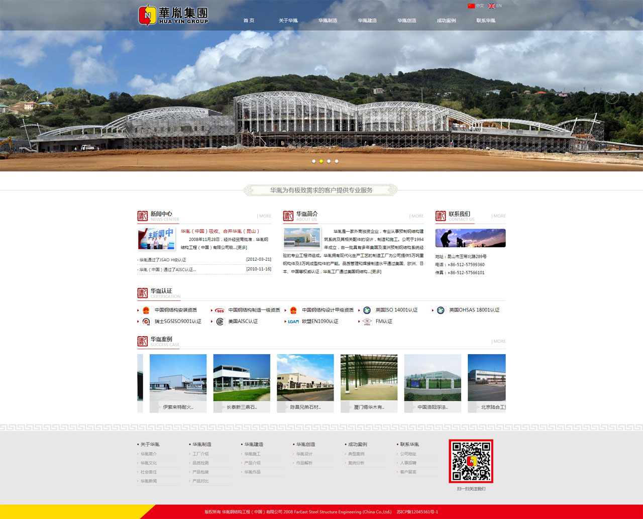 華胤是一家外商獨資企業(yè),專業(yè)從事預(yù)制鋼結(jié)構(gòu)建筑系統(tǒng)及其相關(guān)配件的設(shè)計,制造和施工。公司于1994年成立,由一批具有多年美國及澳洲預(yù)制鋼結(jié)構(gòu)系統(tǒng)經(jīng)驗的專業(yè)工程師組成。華胤擁有現(xiàn)代化生產(chǎn)工藝的制造工廠為公司提供5萬噸重鋼構(gòu)件及3萬噸成型構(gòu)件的產(chǎn)能。品質(zhì)管理和焊接制造水平通過美國、歐洲、日本、中國等權(quán)威認證,華胤工廠通過美國鋼結(jié)構(gòu)協(xié)會質(zhì)量認證(AISC),德國LGA焊接體系認證,通過荷蘭DNV、瑞士SGS ISO9001質(zhì)量體系認證,部分產(chǎn)品獲得FM全球公司(FM Approvals)認證,設(shè)計與施工分別獲得了中國工程設(shè)計甲級證書與中國鋼結(jié)構(gòu)制造企業(yè)二級資質(zhì)證書。所有制造流程及質(zhì)量控制遵照標準作業(yè)程序。